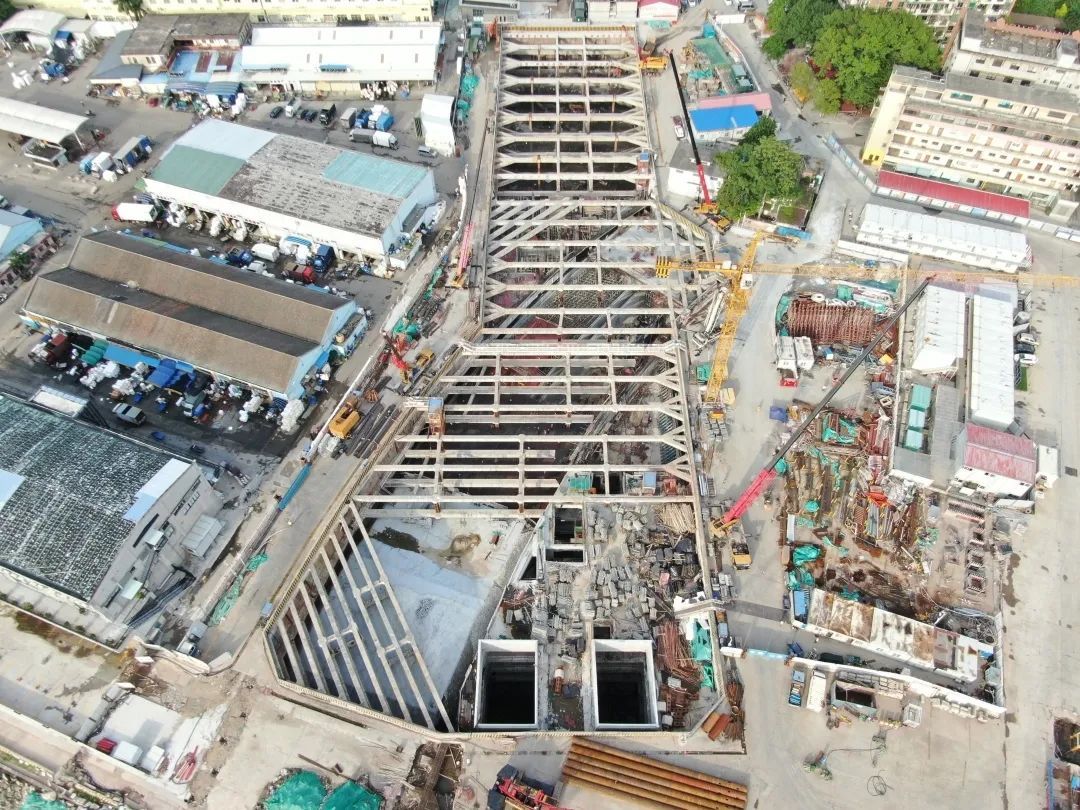 与地铁六号线的换乘改造是车站施工的重难点之一,地铁建设者们需在确保地铁六号线运营安全的同时,在仅有的4个小时窗口期完成六号线轨行区上方6米×4米的扶梯底斜板的吊装封堵作业。