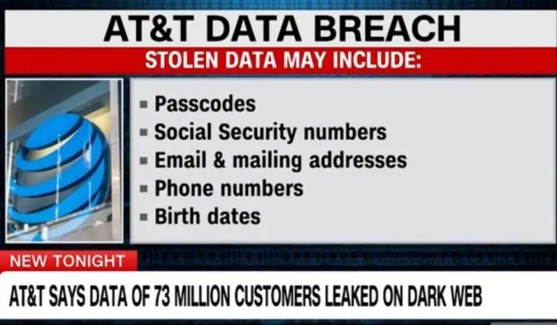 美国电话电报公司(AT&T)7300万用户信息被泄露至暗网。泄露数据包括客户全名、联系方式、社保号、邮箱、地址、电话、生日等。AT&T作为美国第三大零售无线运营商,拥有庞大的客户群体和市场份额。该公司今年两次发生此类用户数据泄露事件。