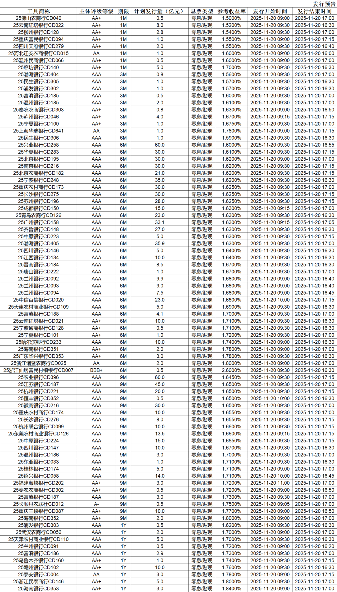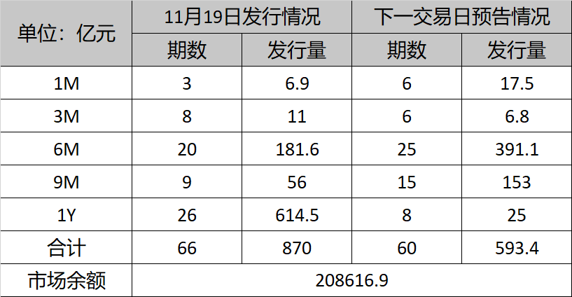 同业存单发行66只,发行量870.0亿元,较前日减少206.5亿元。