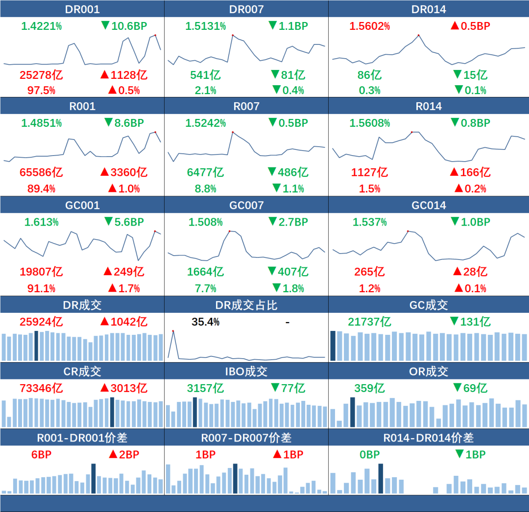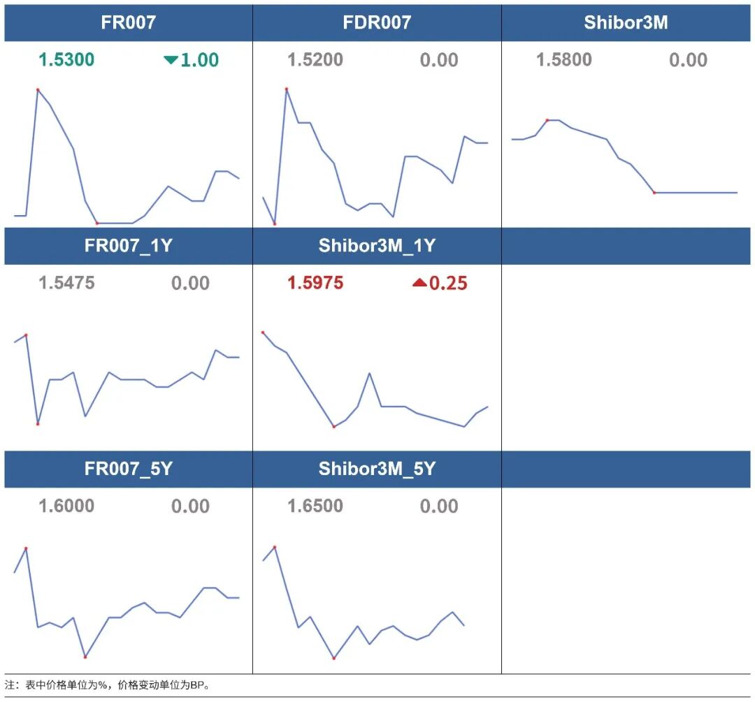 隔夜、1个月、3个月Shibor分别报1.42%、1.52%和1.58%,分别较前下行10.5BP、持平和持平。